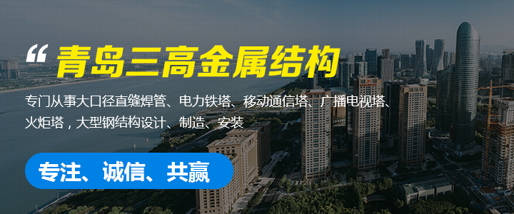 青島三高金屬結構有限公司是一家專門從事大口徑直縫焊管、電力鐵塔、移動通信塔、廣播電視塔、火炬塔,大型鋼結構設計、制造、安裝的綜合性公司。公司多年來長期與大專院校合作,吸收引進國內外先進技術,不斷提高產品質量。公司技術力量雄厚,現有員工170多人,其中專業工程師30多人。公司已通過ISO9001質量標準體系認證,并嚴格執行ISO9001質量體系的標準要求,使產品在每一個環節都受到有效的檢測和控制,確保產品符合設計標準的要求。